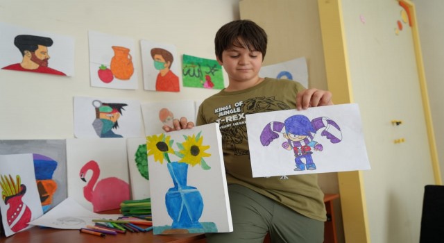 Bayburtlu Aziz Mahmut Hüdai Demirhan isimli 10 yaşındaki ilkokul öğrencisi, resim yeteneğiyle görenleri kendine hayran bırakıyor.