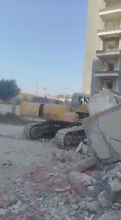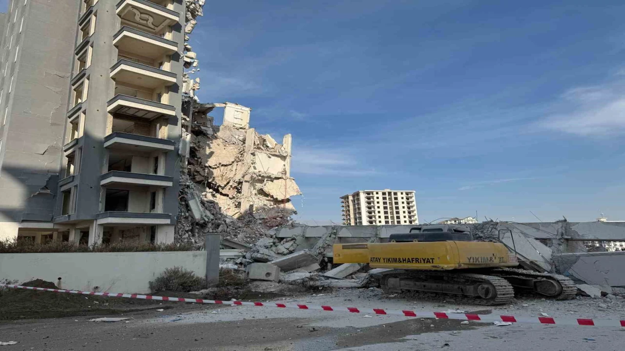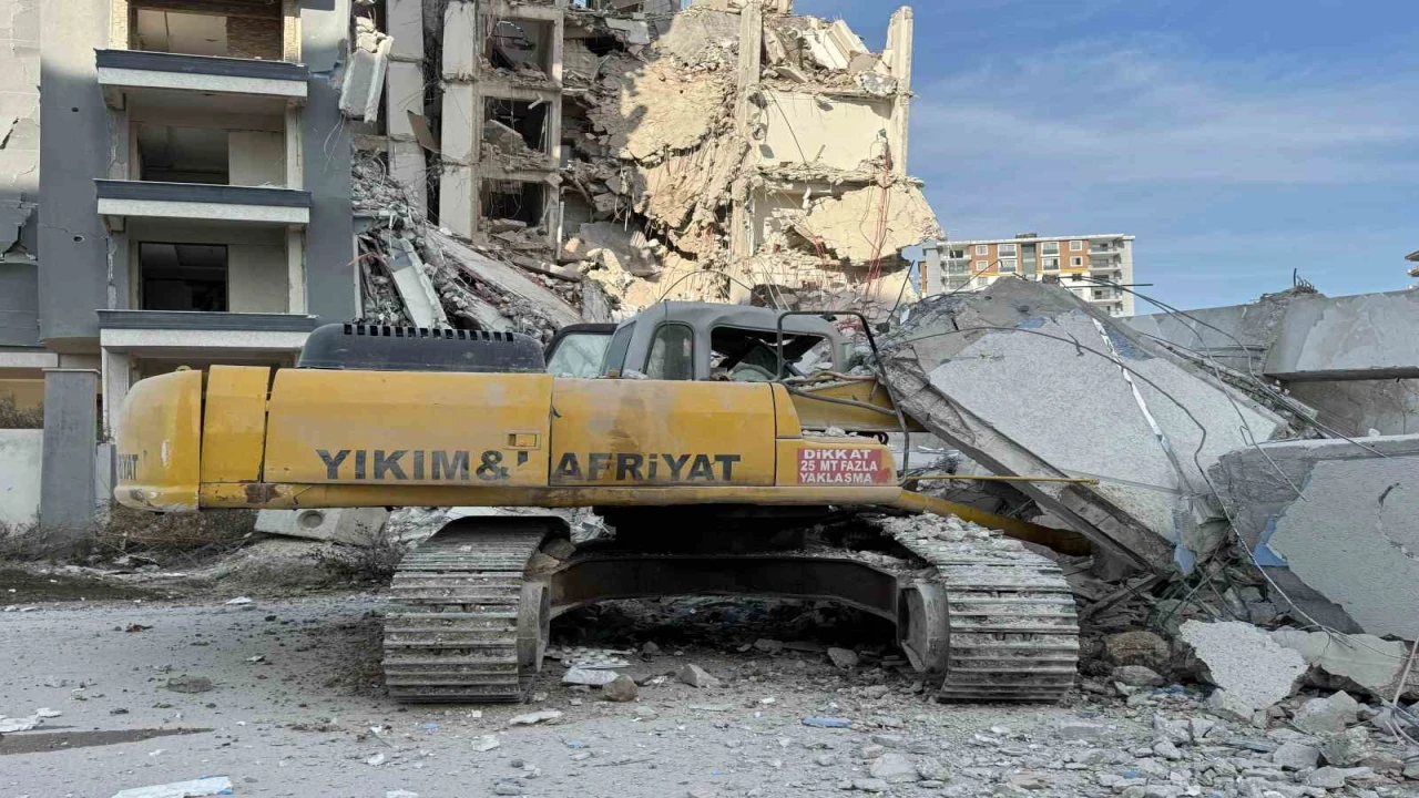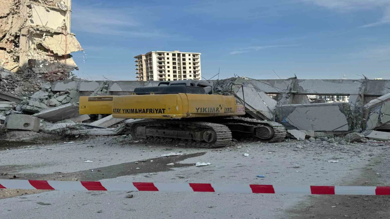 Olay, Antakya ilçesi Saraycık Mahallesi'nde yaşandı. Yıkım kararı alınan ağır hasarlı 11 katlı bina, yıkımın gerçekleştiği sırada iş makinesinin üzerine çöktü.