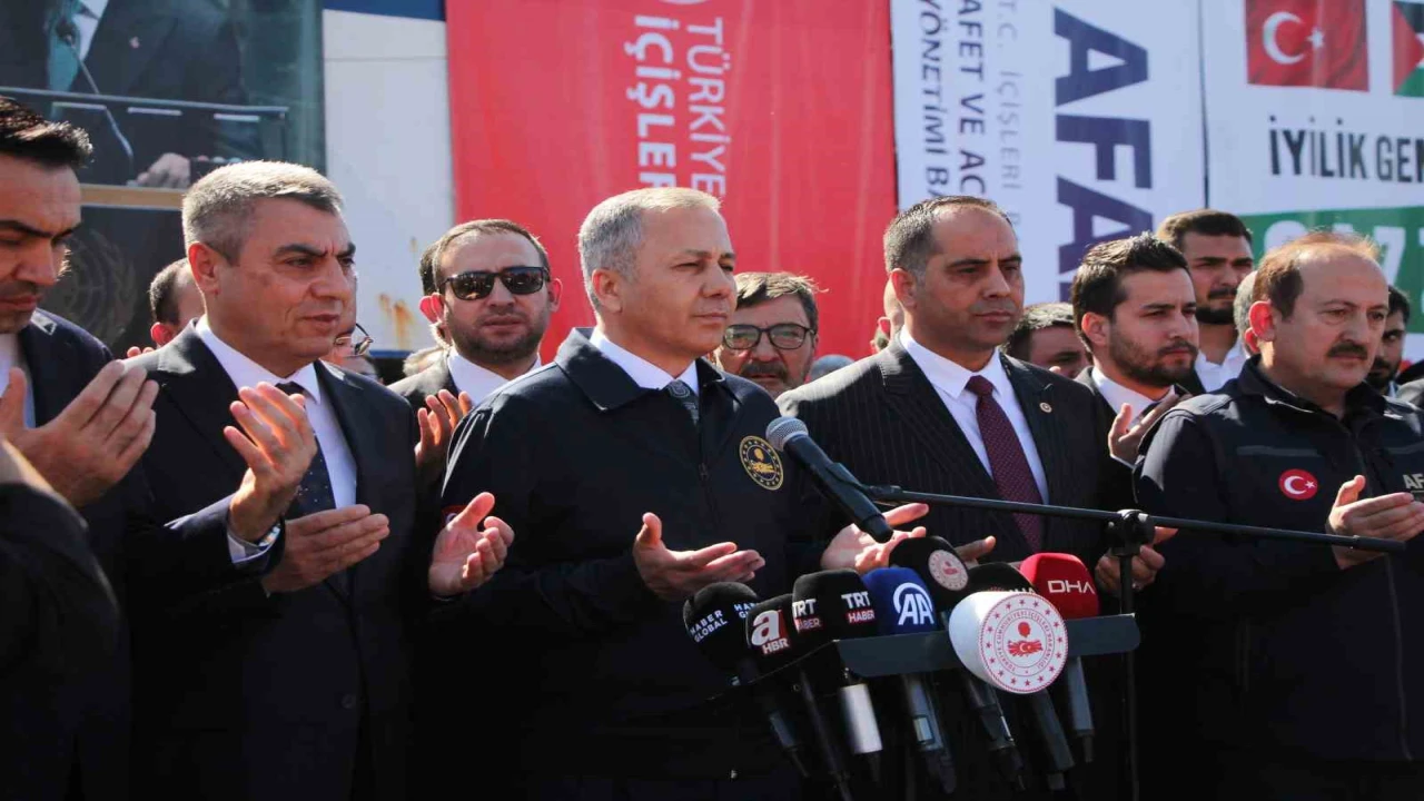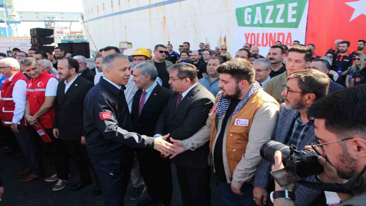 Mersin limanından ’17. İyilik Gemisi ’Akdeniz’i uğurlayan İçişleri Bakanı Ali Yerlikaya," Cumhurbaşkanımızın liderliğinde, İsrail’in Gazze’ye yönelik soykırımın son bulması, sivillerin korunması ve insani yardımların kesintisiz olarak ulaştırılması için, yoğun bir diplomasi yürütmüştür, yürütmeye de devam etmektedir. Türkiye olarak biz, işgalin ilk anından itibaren tarihin doğru tarafında yer aldık, Gazzeli kardeşlerimizin yanında dimdik durduk. Bizim devlet geleneğimizde taraf bellidir. Biz, mazlumun yanında, zalimin karşısındayız" dedi.