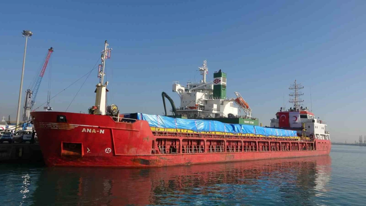 Gazze’ye gönderilmek üzere hazırlanan ve içerisinde yaklaşık bin 300 ton insani yardım malzemesi bulunan ‘ANA-N’ isimli 19. İyilik Gemisi, Mersin Uluslararası Limanı’ndan düzenlenen törenle uğurlandı.