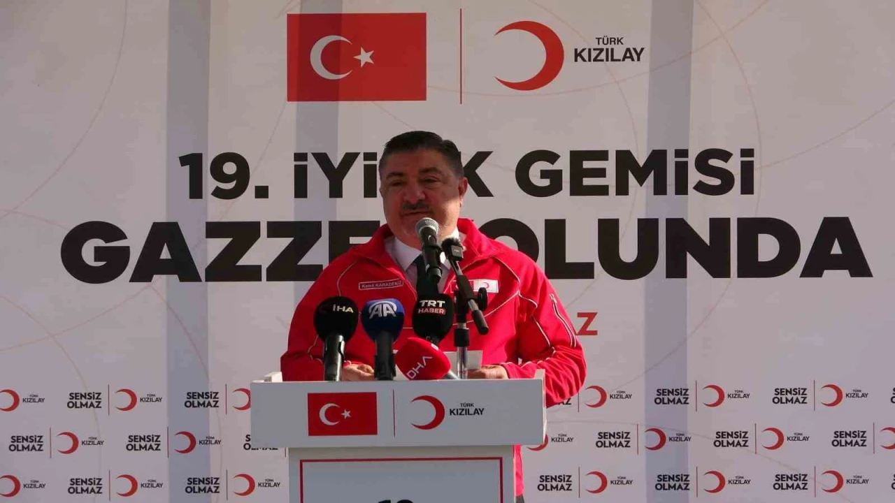 Daha önce gönderilen yardımlara da değinen Karadeniz, "AFAD koordinasyonunda yola çıkan İyilik Gemilerimizle gönderdiğimiz kurban konserveleri Gazze’ye ulaştı. Bugün Gazze’de neredeyse her aileye ikişer kutu kurban payı ulaştırmış olmanın huzurunu yaşıyoruz. Bugün ise 19’uncu İyilik Gemimizi, aynı inançla, aynı sorumluluk bilinciyle uğurluyoruz" diye konuştu.