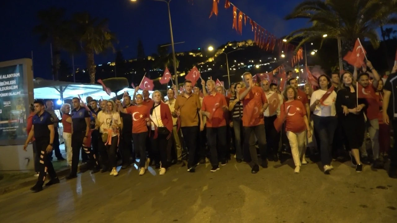 Yürüyüşe Alanya Kaymakamı Fatih Ürkmezer, Alanya Belediye Başkanı Osman Tarık Özçelik, Alanya İlçe Emniyet Müdürü Murat Kenan Patat, CHP Alanya İlçe Başkanı Bülent Kandemir, AK Parti Alanya İlçe Başkanı Mehmet Tavlı ile yüzlerce vatandaş katıldı.
