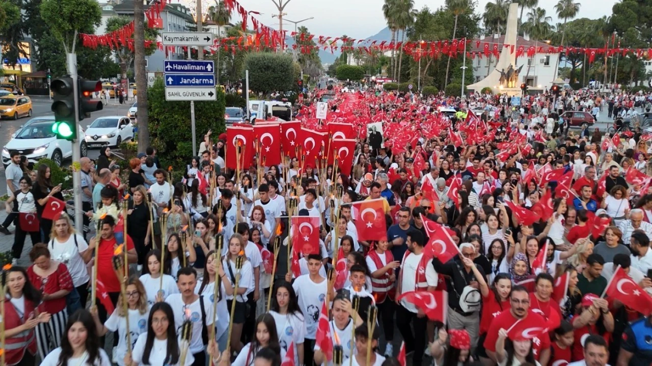 ANTALYA’NIN ALANYA İLÇESİNDE 19 MAYIS ATATÜRK’Ü ANMA, GENÇLİK VE SPOR BAYRAMI COŞKUSU, GÜNDÜZ GERÇEKLEŞTİRİLEN RESMİ TÖRENLERİN ARDINDAN AKŞAM DÜZENLENEN FENER ALAYI YÜRÜYÜŞÜ VE GÖKHAN ÖZEN KONSERİYLE DEVAM ETTİ.