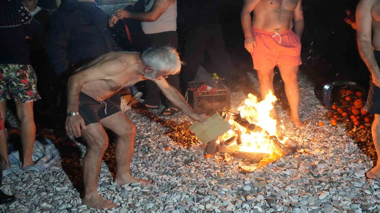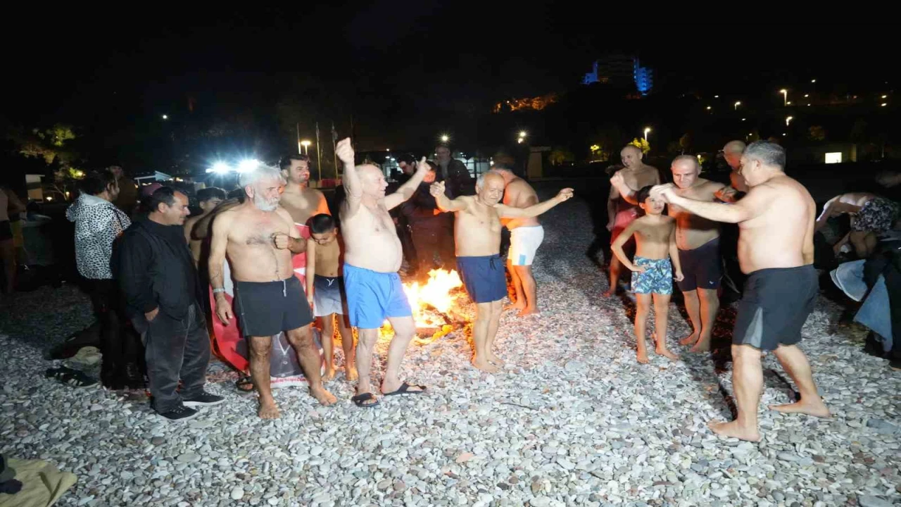 Hava sıcaklığının 9, deniz suyu sıcaklığının ise 18 derece olduğu Antalya’da grup üyeleri, suyun sıcaklığından memnun olduklarını belirtti. Denize girmeden önce sahilde yaktıkları ateşin başında toplanan ekip, dans edip halay çekti.