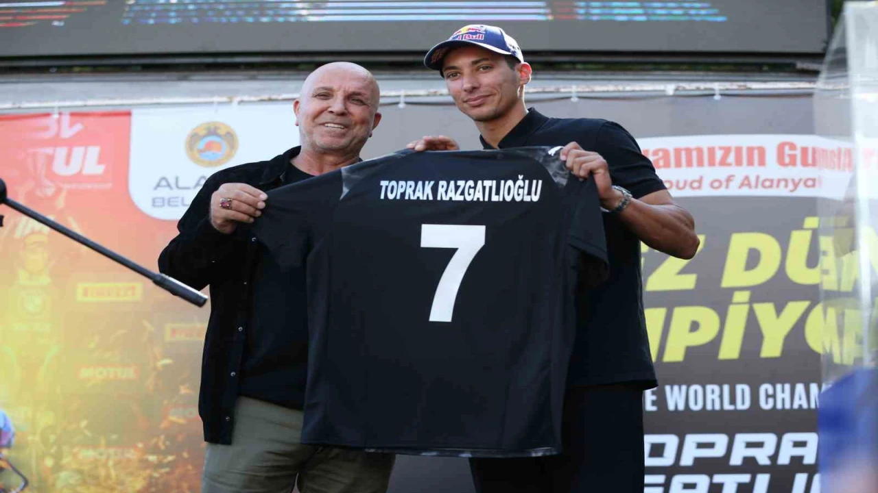 Dünya Şampiyonu Toprak Razgatlıoğlu alanı dolduran sporseverler ile imza ve fotoğraf çektirmeyi ihmal etmedi. Ayrıca Toprak, sahnede Alanya Belediye Başkanı ve Alanyaspor Başkanı Hasan Çavuşoğlu ile Erik Dalı oyun havası oynadı.