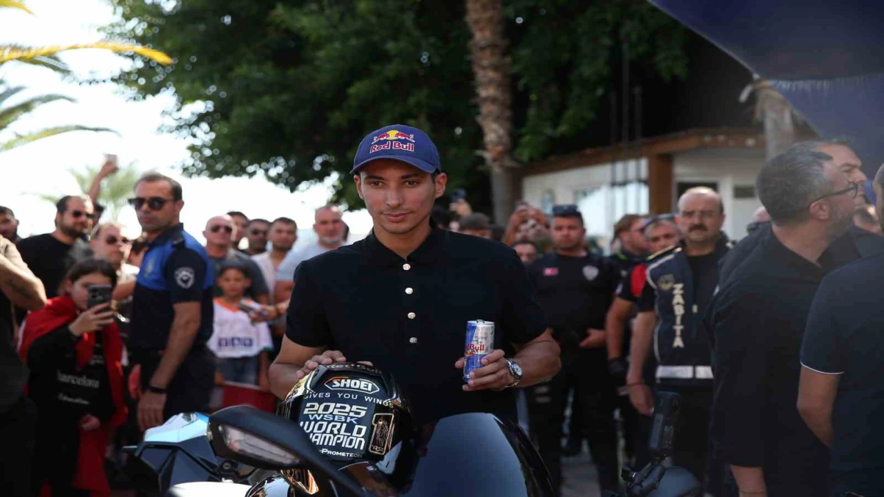 Dünya Superbike Şampiyonası’nda (WSBK) sezonu zirvede tamamlayarak kariyerinin üçüncü dünya şampiyonluğunu kazanan Red Bull sporcusu Toprak Razgatlıoğlu, memleketi Alanya’da coşkuyla karşılandı. Alanya halkı ve motosiklet tutkunları, milli sporcuyu görkemli bir konvoyla karşıladı.