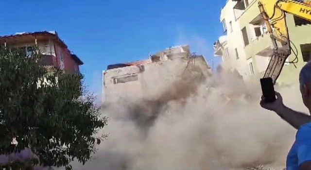Antakya ilçesi Esentepe Mahallesi’nde bulunan 4 katlı apartman da iş makinesiyle kontrollü olarak yıkıldı. Binanın yerle bir olma anıysa kameralara yansıdı. 4 katlı binanın yıkımı esnasında herhangi bir olumsuzluk yaşanmadı.