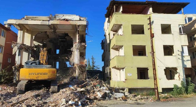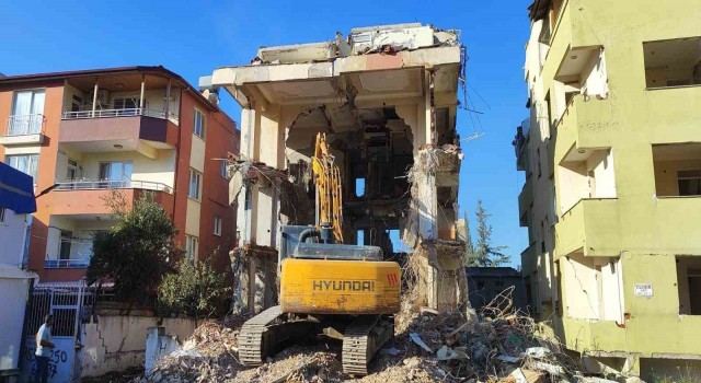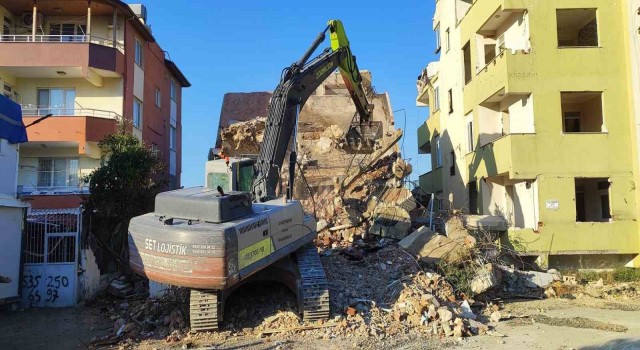 Kahramanmaraş merkezli depremlerde ağır hasar alan Hatay’da mahkeme süreci sona eren binaların yıkım ve enkaz kaldırma çalışmaları aralıksız sürüyor.