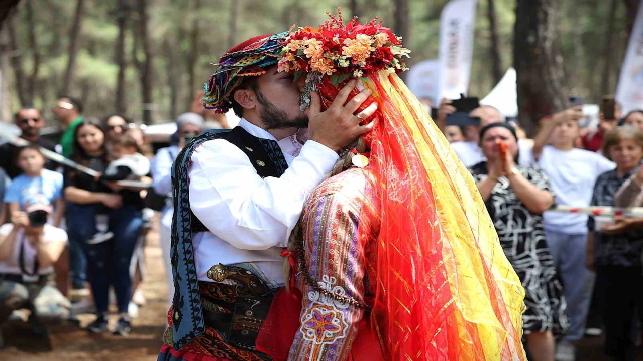 4. Uluslararası Antalya Yörük Türkmen Festivali’nde bir çiftin gerçek kına merasimi yapıldı. Aksu Dumanlar Hayta Yörüklerinden Hatice Koç ve Tatar Yörüklerinde Mehmet Can Uzgören çiftinin kına töreni yapıldı. Festival alanında vatandaşların meraklı bakışları arasında yapılan kına törenini izleyenler ilk başta festival kapsamında temsili olarak yapıldığını düşünürken gerçek bir kına töreni olduğunu öğrenince büyük şaşkınlık yaşadı. Çiftin arkadaşları ve ailesi Hatice ile Mehmet’in kınasını yaktı. Çift geleneklerini yaşatarak hem kınalarını yaptılar hem de unutulmaz bir an yaşadılar. Festivali gezen vatandaşlar da alkışlarıyla genç çifte destek oldu.