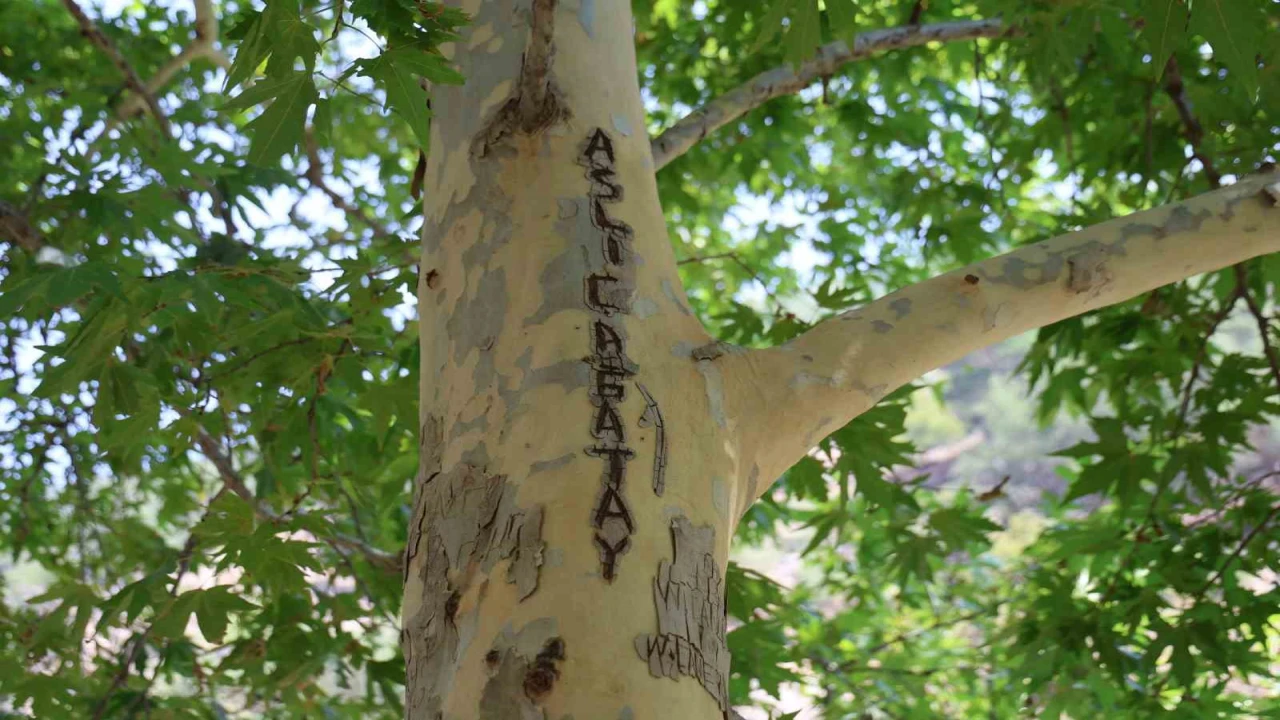 Adana’nın Kozan ilçesinde yaklaşık 45 yıllık olduğu değerlendirilen çınarın gövdesi ve dalları bıçakla kazınarak yazı tahtasına çevrildi. Vatandaşlar ise ağacı korumak için gövdesini çuvallarla sardı.