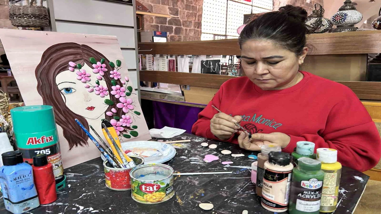 Sokullu Mehmet Paşa Külliyesi'ndeki iş yerinde taş boyama sanatıyla gelir sağlayan 47 yaşındaki Zübeyde Ersan, “Taş boyama sanatına yaklaşık 15 yıl önce hobi olarak başladım, kendime dinlenme olarak ayırdığım vakitlerde yapıyordum. Farklı alanlarda taş boyama yapıyorum. Kapı önü tutmalıklar, panolar, nihaleler ve taş boyamayla ilgili özel günlere ait özel tasarımlar yapıyorum. Kısacası şöyle söyleyebilirim ekmeğimi taştan çıkarıyorum” şeklinde konuştu.