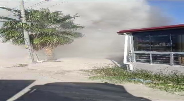 Hatay’ın Arsuz ilçesinde iş makinasıyla yıkılan 5 katlı binanın yerle bir olma anı cep telefonu kamerasına yansıdı.