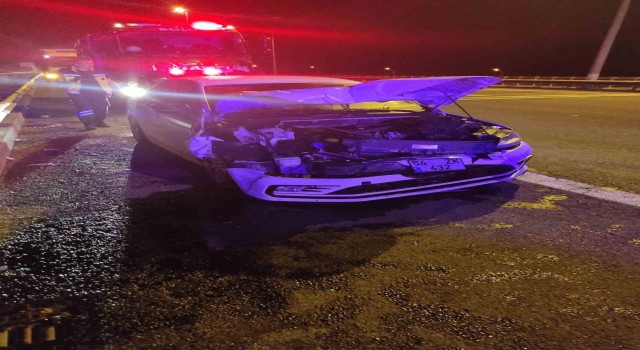 TEM Otoyolu’nun Bolu geçişinde tıra arkadan çarpan otomobil hurdaya döndü. Kazada, otomobilde bulunan 5 kişi yara almadan kurtuldu.