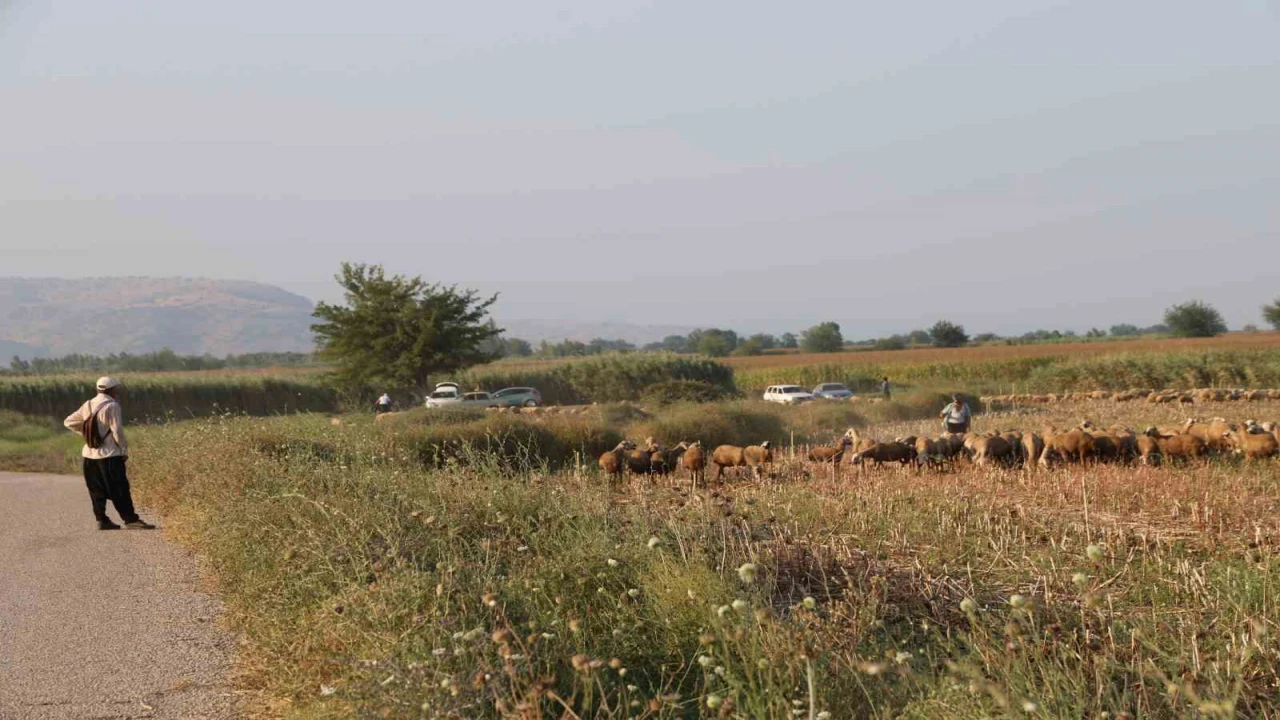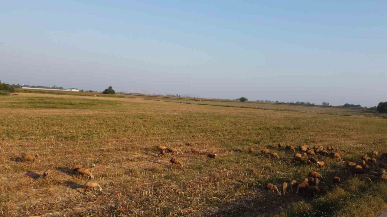 Nemle birlikte hissedilen sıcaklığın 50 derece olduğu Adana’nın Kozan ilçesinde vatandaş koyunla kilometrelerce alanı katederek sürülerini otlatıyor.