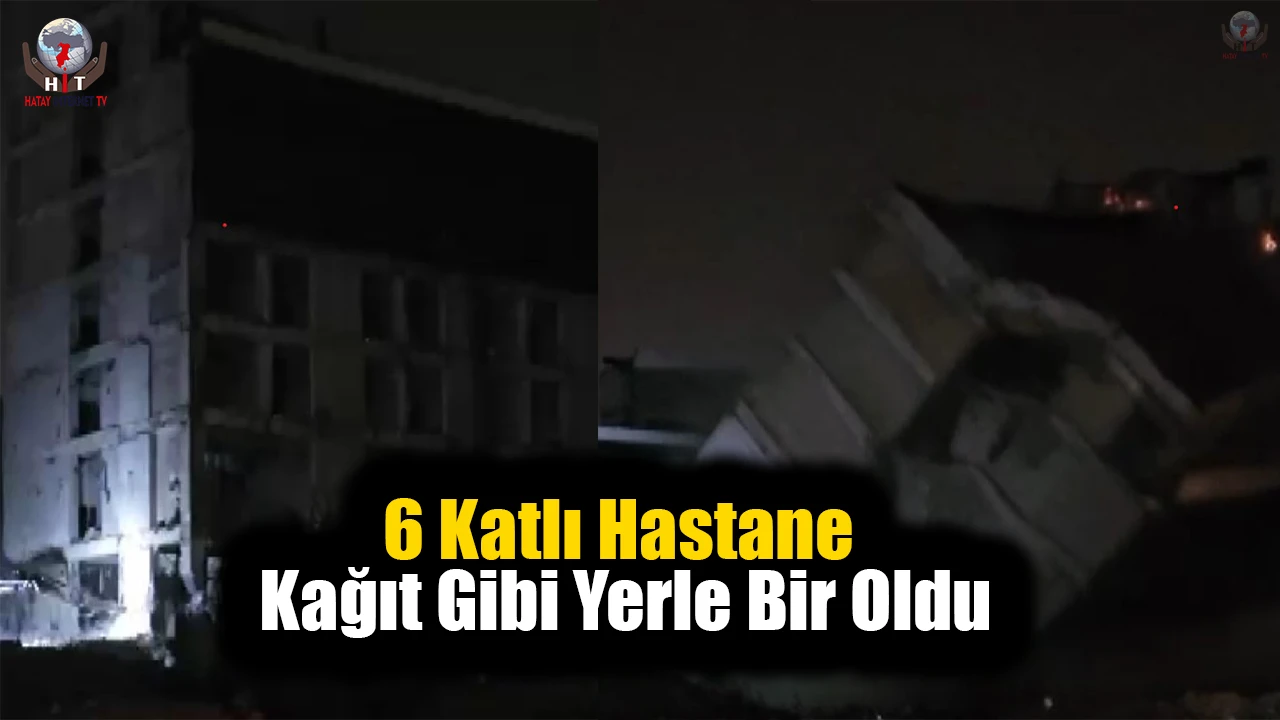 HATAY'DA DEPREMDE HASAR ALAN 6 KATLI EĞİTİM VE ARAŞTIRMA HASTANESİ'NİN BİR BLOĞUNUN YIKILMA ANI CEP TELEFONU KAMERASINA YANSIDI.