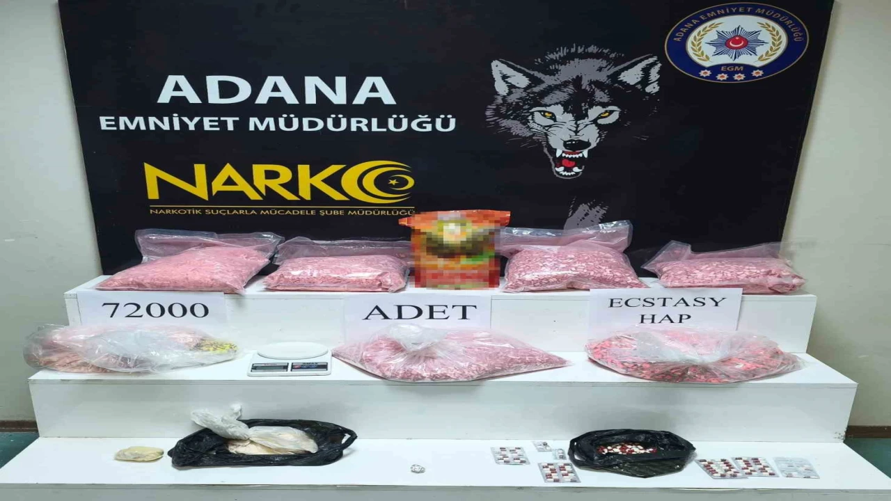 Adana’da bir eve yapılan operasyonda 72 bin extacy hap ele geçilirken olayla ilgili 2 kişi gözaltına alındı. Uyuşturucu maddelerinin kendilerine ait olmadığını öne süren iki şüpheli tutuklandı.