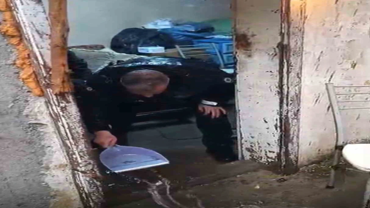 TARSUS'TA EVİNİ SU BASAN YAŞLI ADAMIN YARDIMINA POLİS KOŞTU