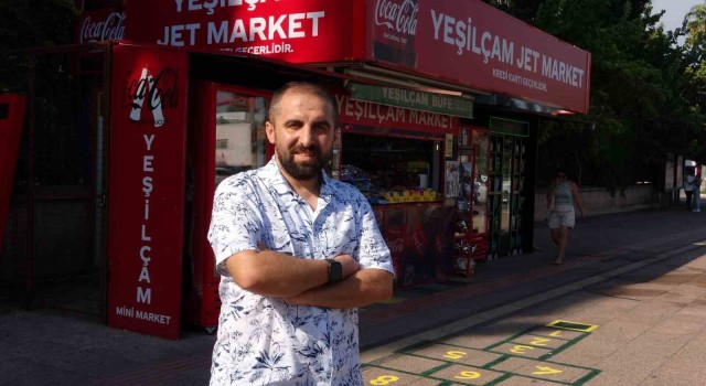 Mersin’in Toroslar ilçesi GMK Bulvarı’nda yaklaşık 5 yıldır büfe işleten Kahraman Baykal, iş yerinin önündeki kaldırıma geleneksel oyunlardan sek sek oyununu çizdi. Baykal’ın bu farklı dokunuşu, kaldırımdan geçenlerin çocukluk yıllarının neşesini yeniden canlandırdı. Sek sek oynayarak büfenin önünden geçenlere çikolata ikram etmeyi de ihmal etmeyen Baykal, kaldırımda mutsuz yürüyen insanların yüzünü güldürmek için böyle bir yönteme başvurduğunu anlattı.