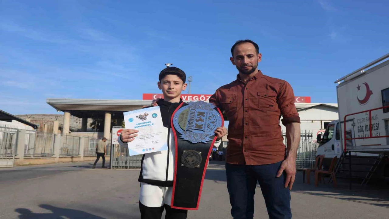 HATAY'DA, SURİYE'DEKİ 13 YIL SÜREN SAVAŞTAN KAÇIP TÜRKİYE'YE SIĞINAN SURİYELİ 13 YAŞINDAKİ OĞLU ABDURRAHMAN EHŞENİ, BABASINDAN ALDIĞI DÖVÜŞ SPORLARI EĞİTİMLERİYLE TÜRKİYE’DE DÜNYA ŞAMPİYONASI’NDA İKİNCİ OLARAK KEMERİN SAHİBİ OLDU.