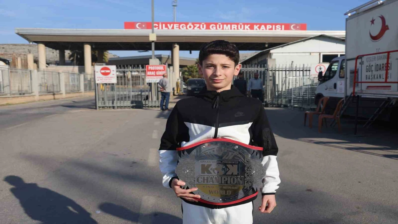 HATAY (İHA) – Hatay'da bulunan Cilvegözü Sınır Kapısı'ndan ülkesinin yolunun tutan 13 yaşındaki Abdurrahman Ehşeni, Türkiye'de katıldığı kick boks turnuvasında kazandığı kemerle ülkesine döndü. Babası da kick boks antrenörü olan Ehseni, savaşın bitmesiyle özgürlüğüne kavuşan ülkesini dünya arenasında temsil etmek istiyor.