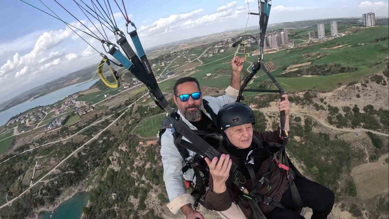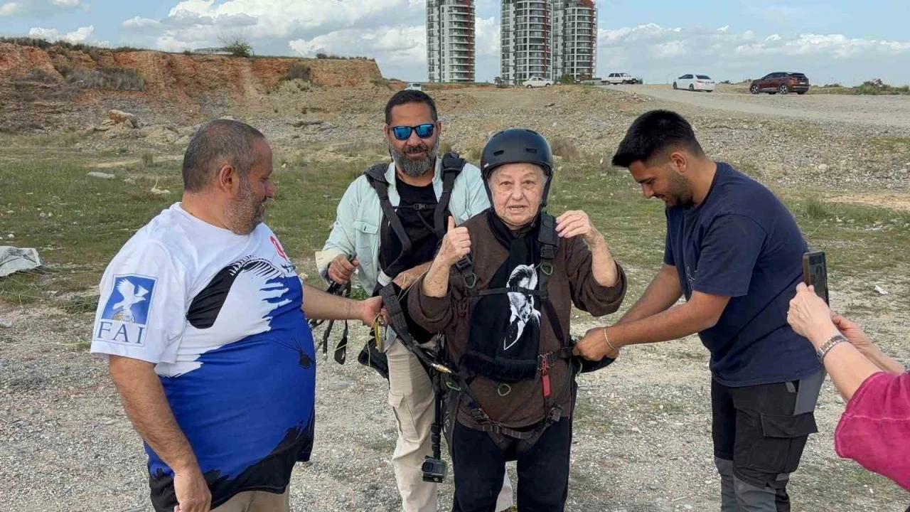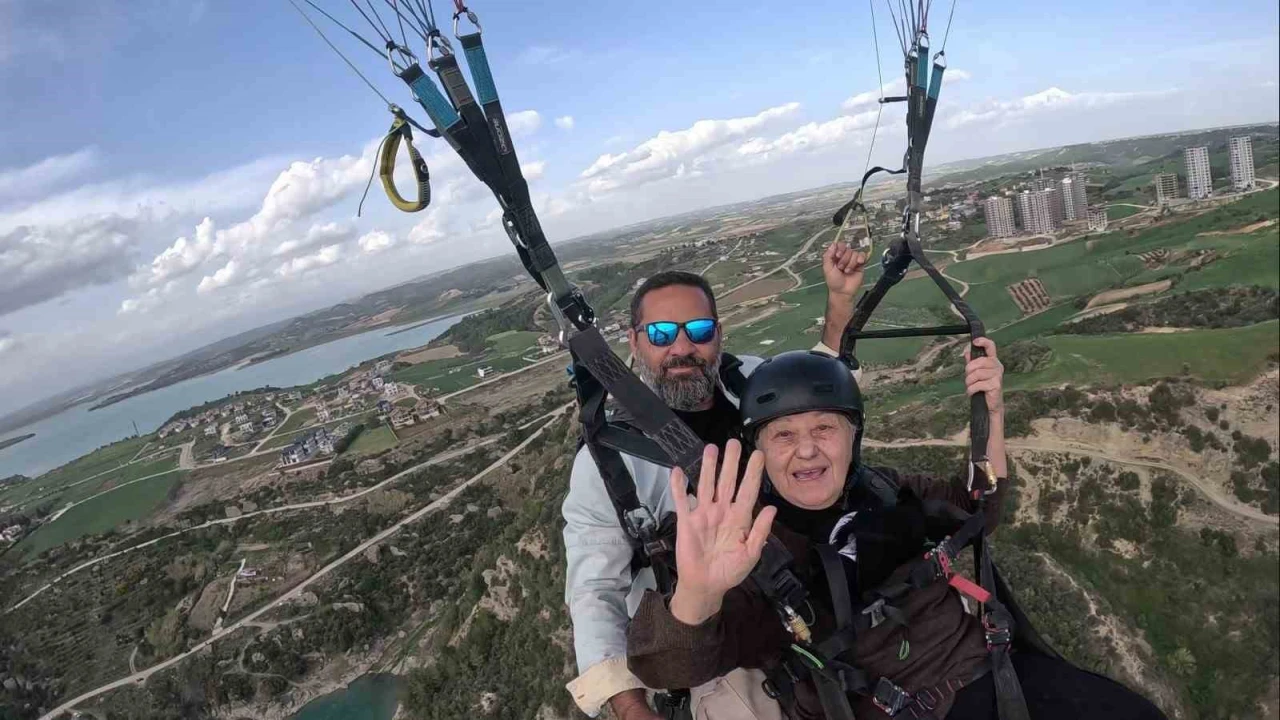 Adana’da yamaç paraşütü ile uçan eski belediye başkanının 83 yaşındaki eşi "ölmeden önce uçmak istedim. Bunu başardığım için çok mutluyum" dedi.
