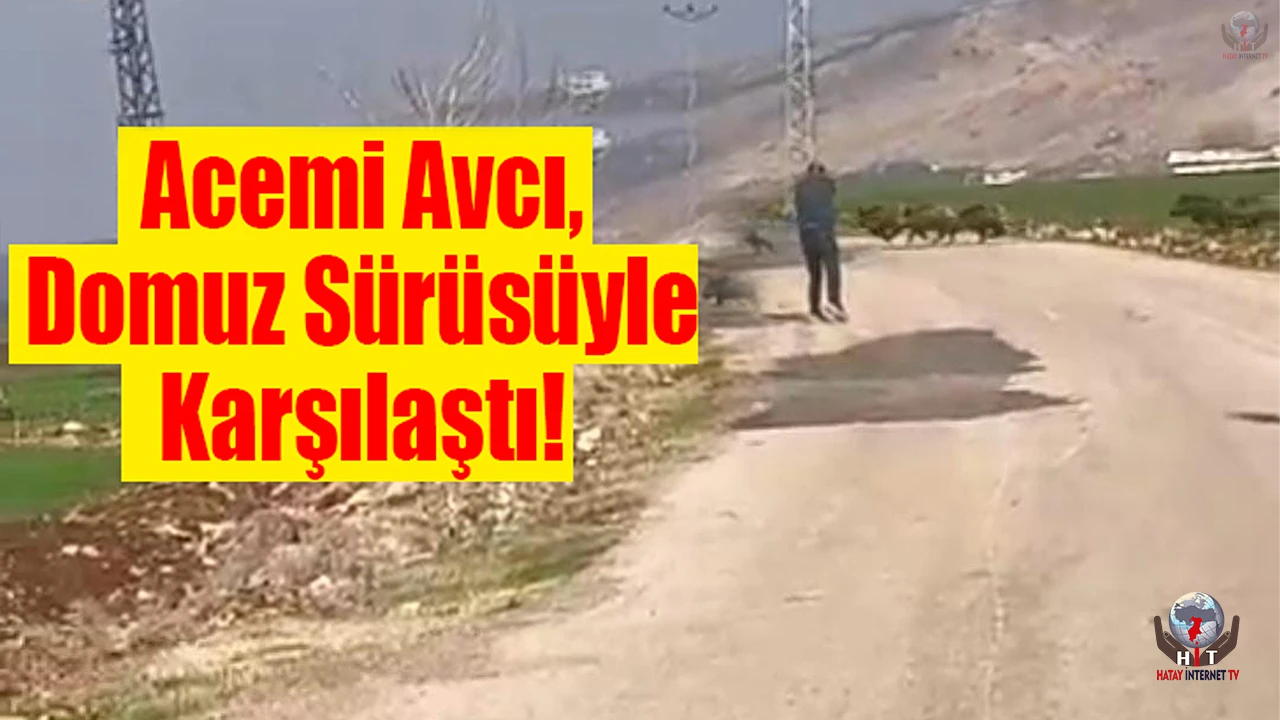 Olay, Kırıkhan ilçesi Gölbaşı Mahallesi'nde yaşandı. Yabani domuz sürüsü mahalleye indiği esnada kendini korumak isteyen bir kişi, av tüfeğiyle domuzlara ateş etti. Acemi avcının domuz sürüsünde hedefi tutturamadığı anları kayıt altına alan arkadaşı ise onunla dalga geçti.
