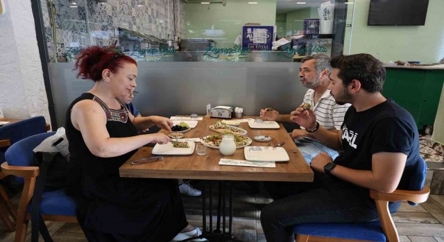 Dondurmalı ve meyveli tatlılardan yemeye gelen müşteri Mehtap Leyla, “Adana’ya gezmeye geldim ama hava gerçekten çok sıcak. Bu sıcakta böyle bir tatlı ise müthiş. Bu sıcaklarda tatlı normalde yenmezdi ama böyle dondurmalı, meyveli tatlılar çok güzel tüketiliyor” diye konuştu.