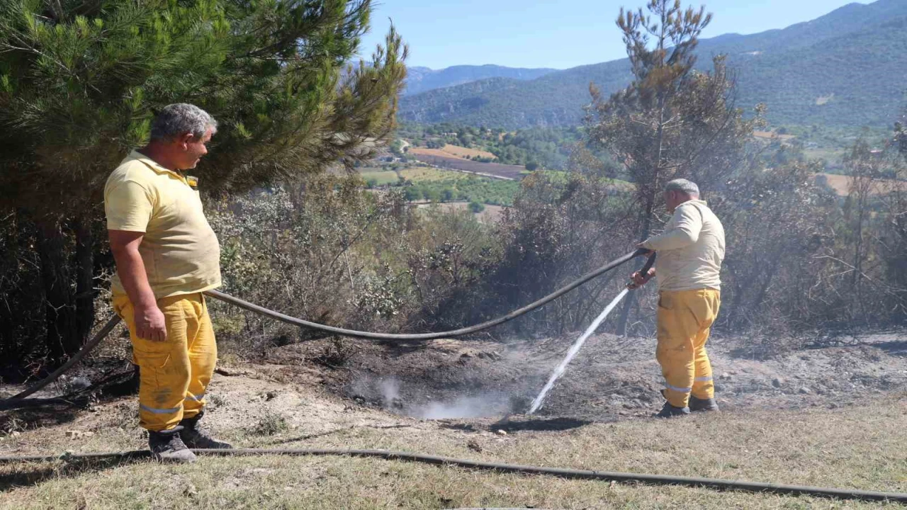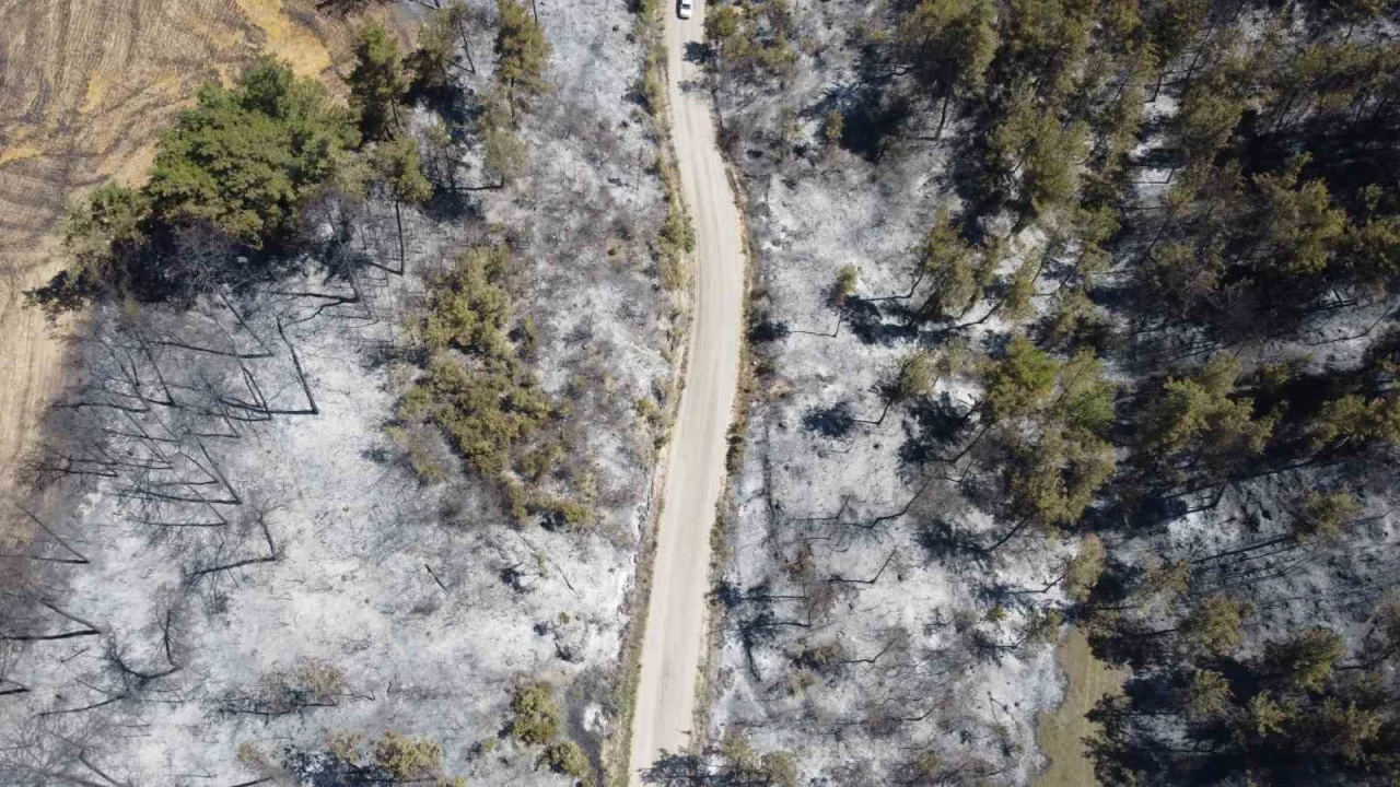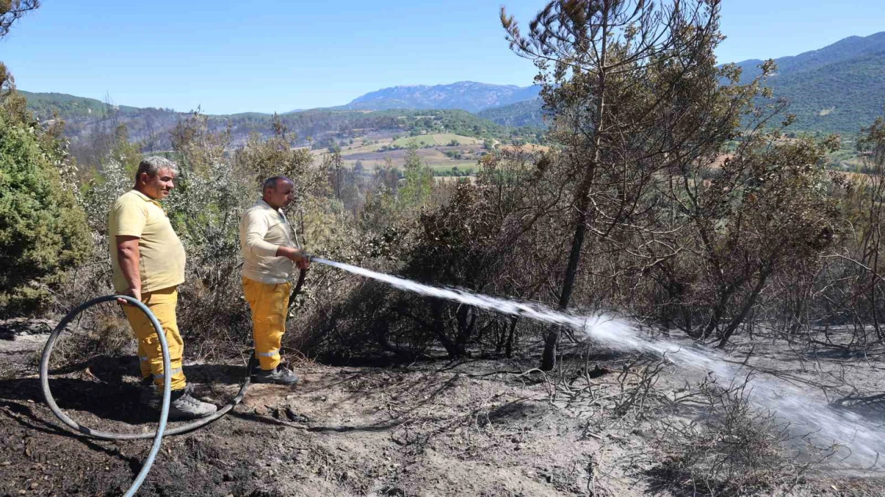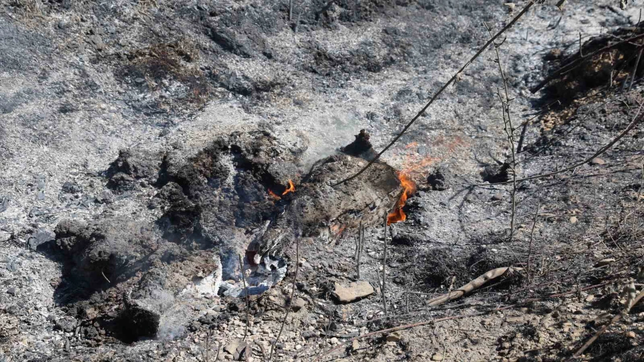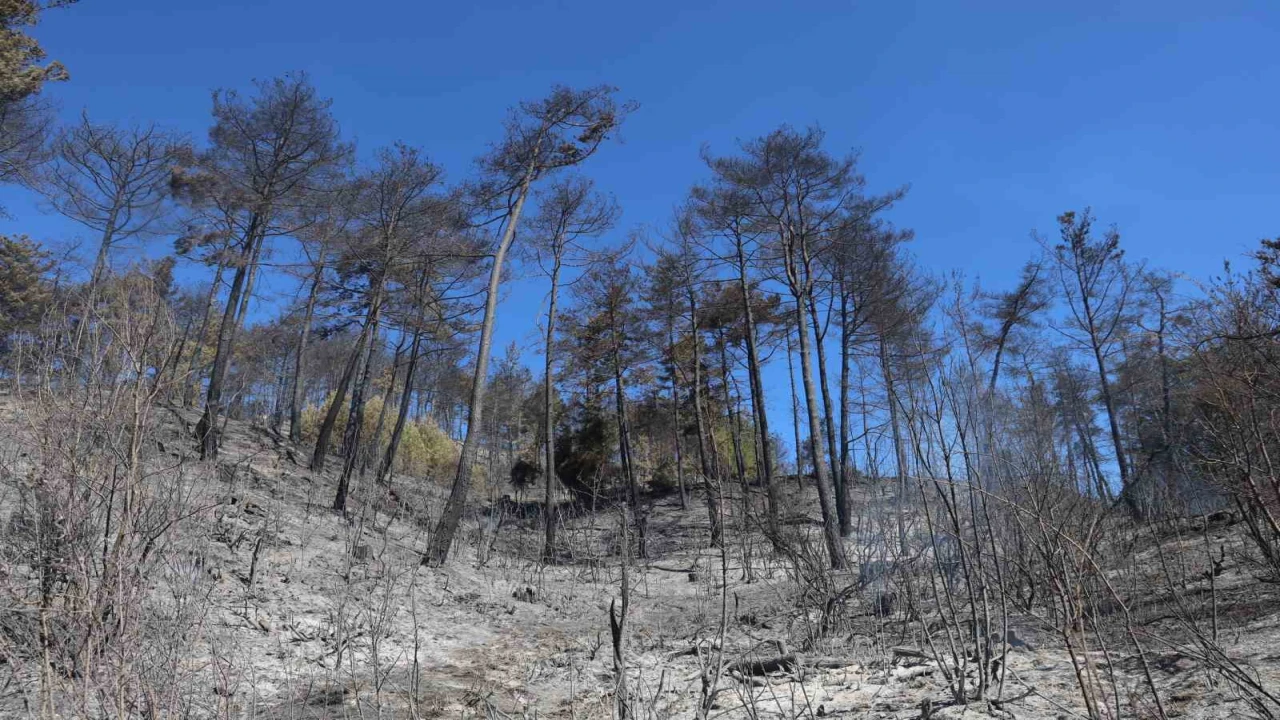 Orman yangın söndürme ekipleri, bölgede soğutma çalışmalarını sürdürürken, yangının geride bıraktığı kara örtü ve yanan ağaçlar acı tabloyu gözler önüne serdi.