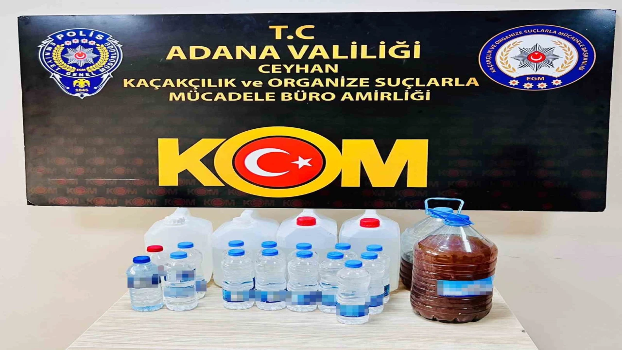 Adana’da 399 litre sahte içki ile 86 litre kaçak etil alkol ele geçirildi, 8 şüpheli gözaltına alındı.