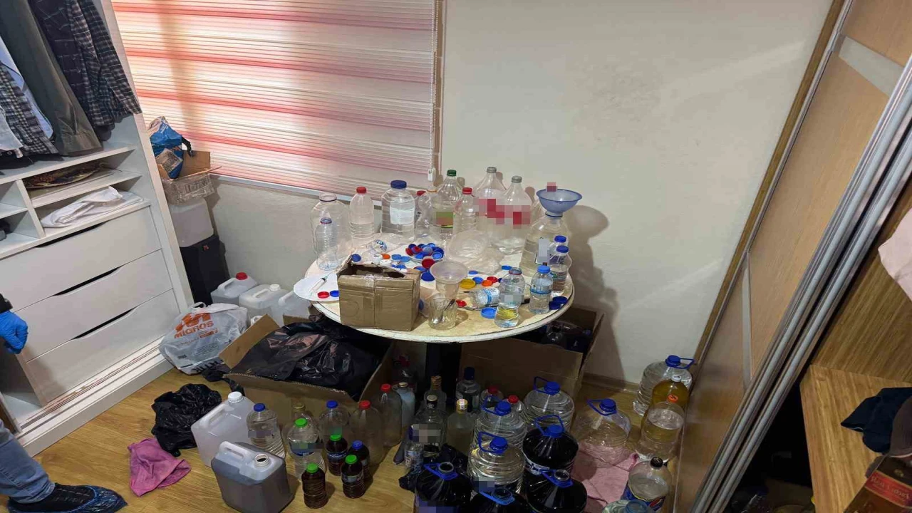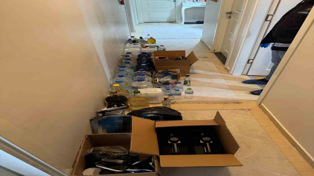 BASKINLARDA 399 LİTRE SAHTE İÇKİ, 86 LİTRE KAÇAK ETİL ALKOL, 755 AROMA VERİCİ KİT ELE GEÇİRİLDİ