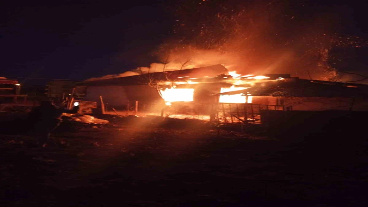 ADANA’NIN TUFANBEYLİ İLÇESİNDE GECE ÇIKAN YANGINDA AHŞAP EV TAMAMEN YANARKEN, OLAYDA CAN KAYBI YAŞANMADI.