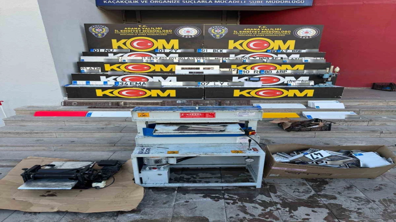Alınan bilgiye göre, İl Emniyet Müdürlüğü Kaçakçılık ve Organize Suçlarla Mücadele (KOM) Şube Müdürlüğü ekipleri, Seyhan ilçesi Fatih Mahallesi’nde iki ayrı adreste izinsiz plaka üretimi yapıldığı bilgisine ulaştı. Belirlenen adreslere yapılan baskında; bin 166 adet bandrolsüz plaka, 600 adet harf ve sayı baskısı, 8 baskı kalıbı, 1 karekod cihazı, 1 plaka presleme makinesi, 1 plaka boyama makinesi ve 1 mühür ele geçirildi.