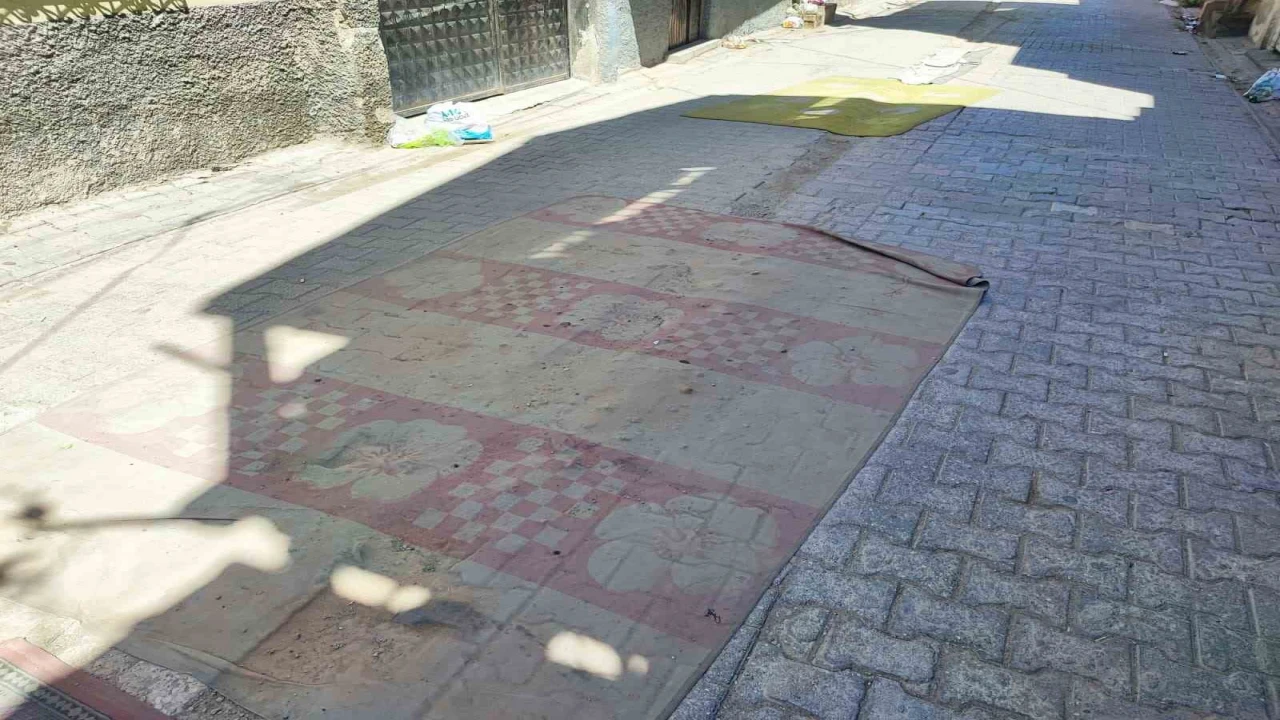 Adana’da bozulmuş yolları yapmadığı için Seyhan Belediyesine tepki gösteren vatandaşlar, kalkan toza çare için sokaklara halı serdi.