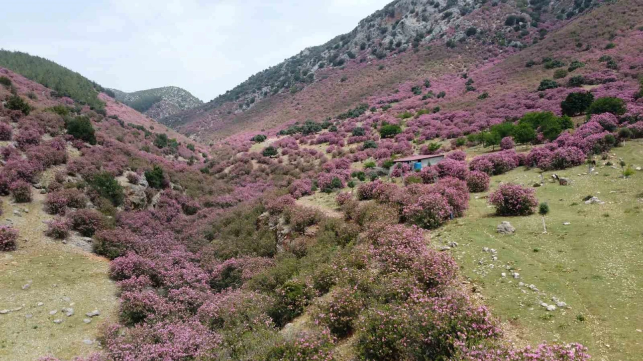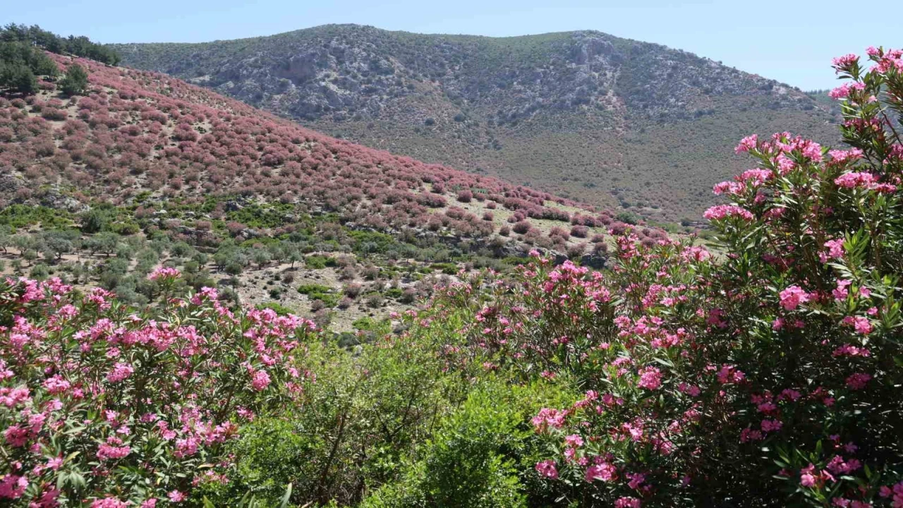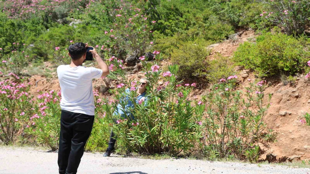 Adana’da her yıl bahar mevsiminin bu zamanlarında dağ yamaçlarını saran zakkum ağaçları, pembe tonlarındaki çiçekleri ile görsel şölen sunuyor.