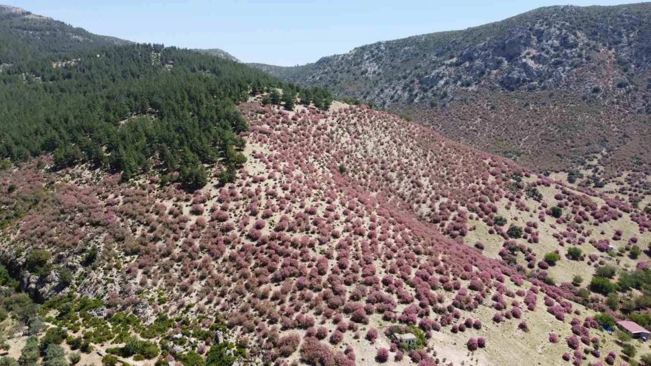 Öte yandan doğadaki pembe şölen havadan dron ile görüntülendi.