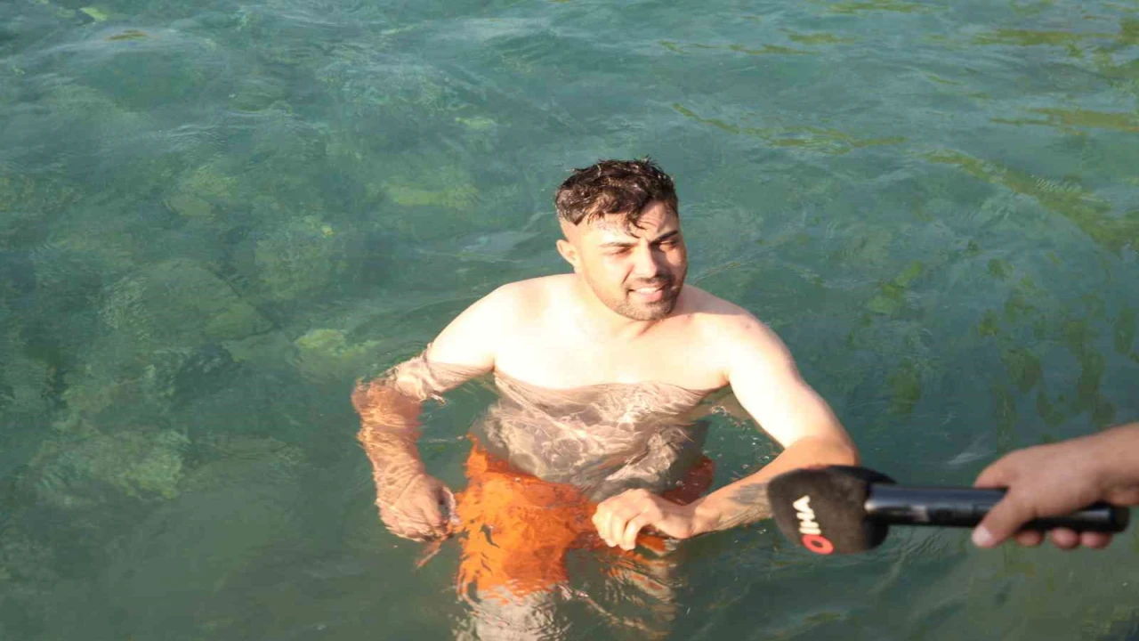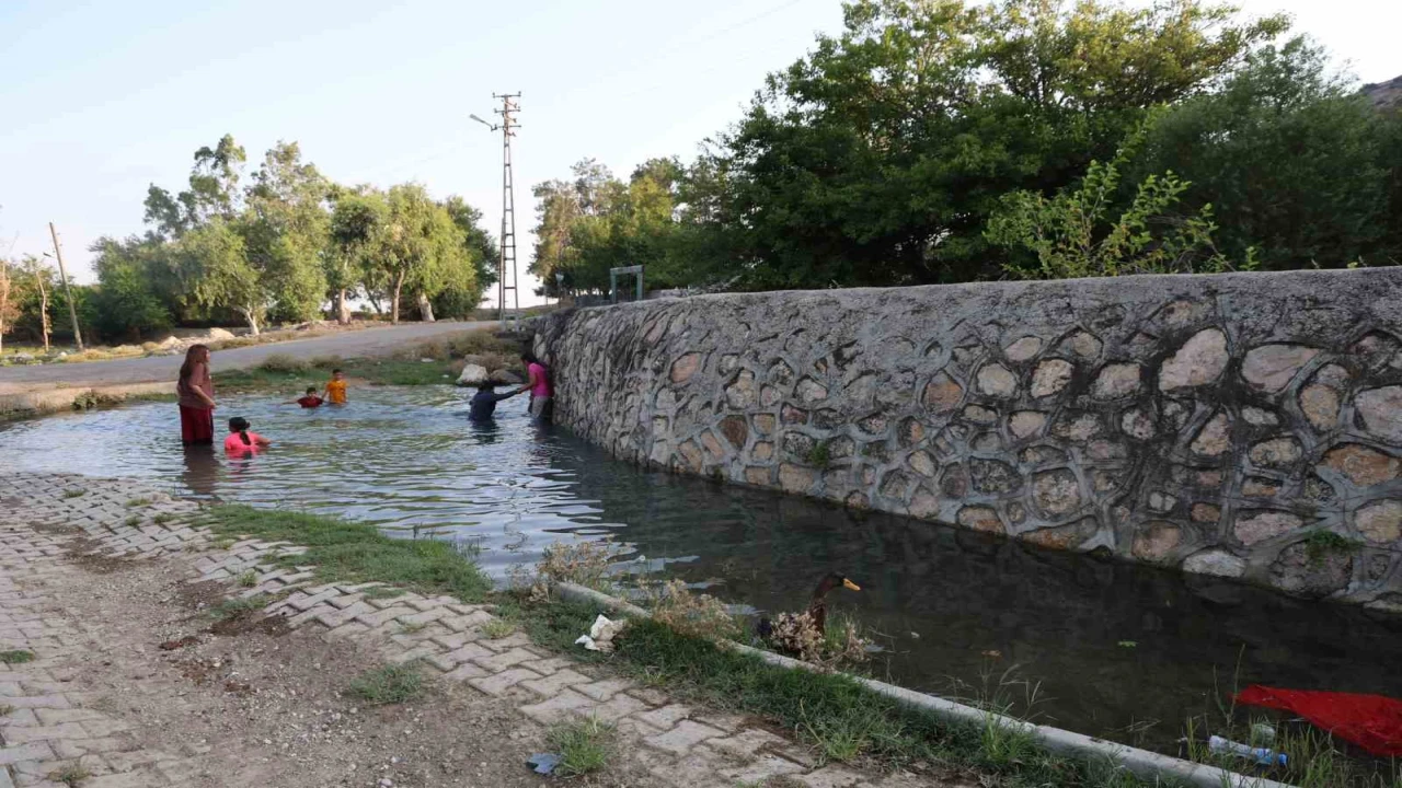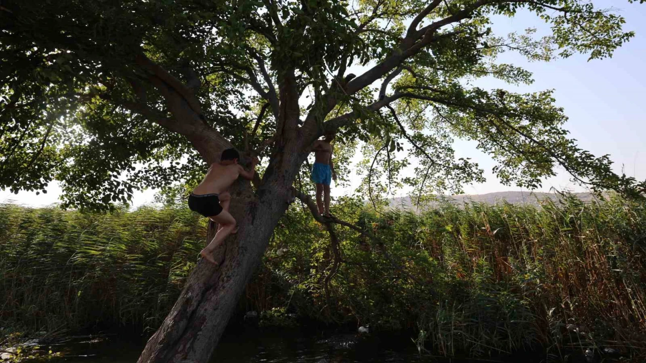 Bazı çocukların vücutlarına sabun sürerek gölete girmesi dikkat çekerken, gençler hem sıcak havadan kaçtı hem de doyasıya eğlendi.