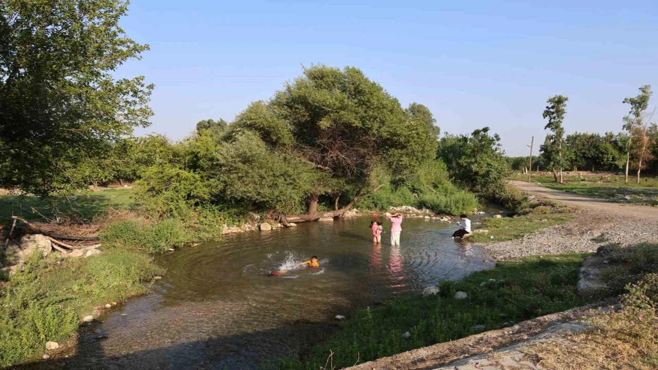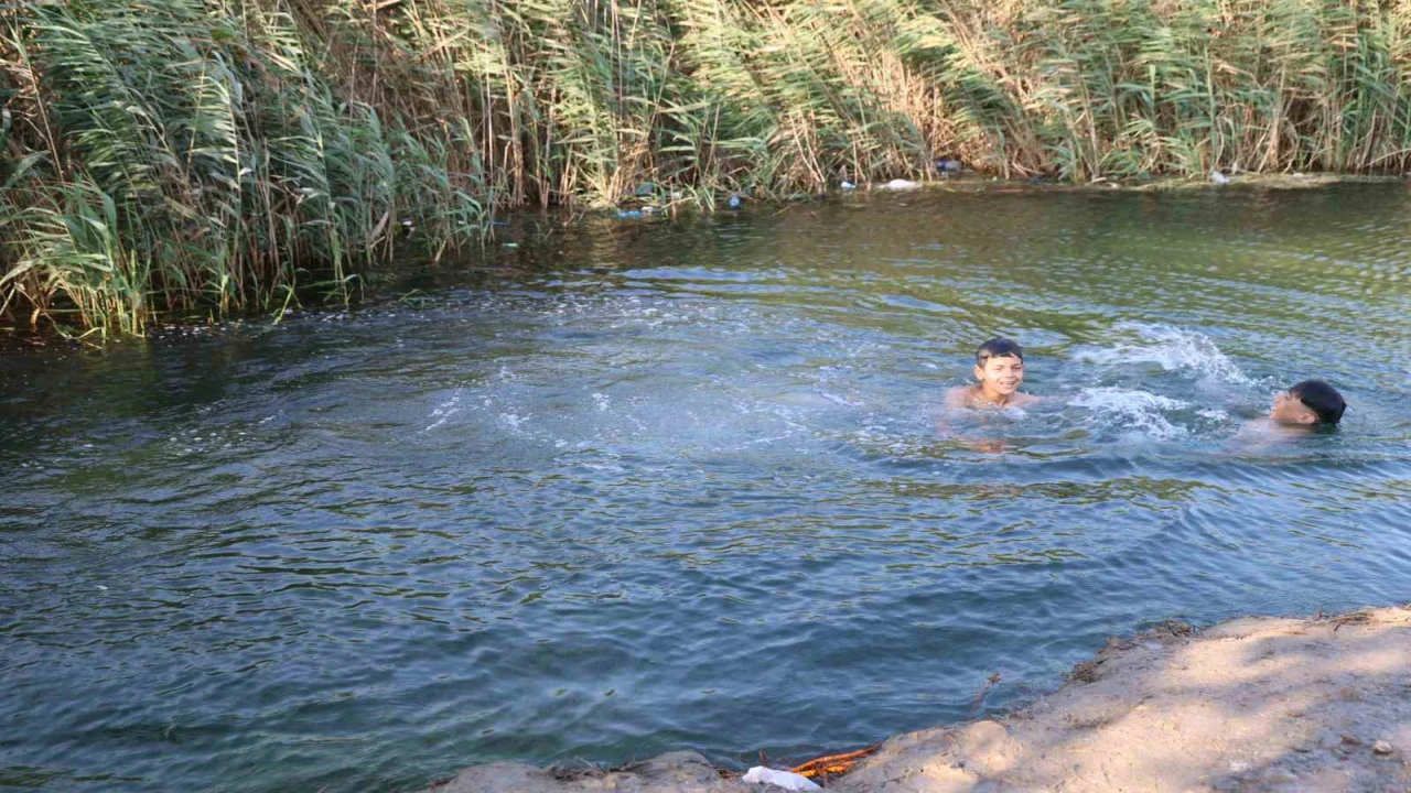 Adana’da Basra ve Afrika sıcaklarının etkisiyle termometreler rekor kırarken, Kozan’da gençler serinlemek göletlere akın etti.