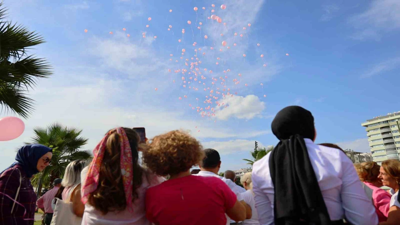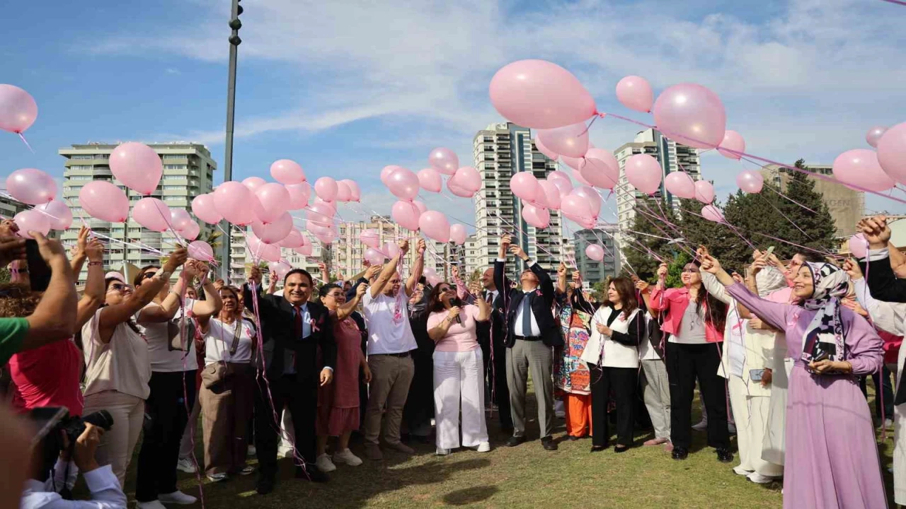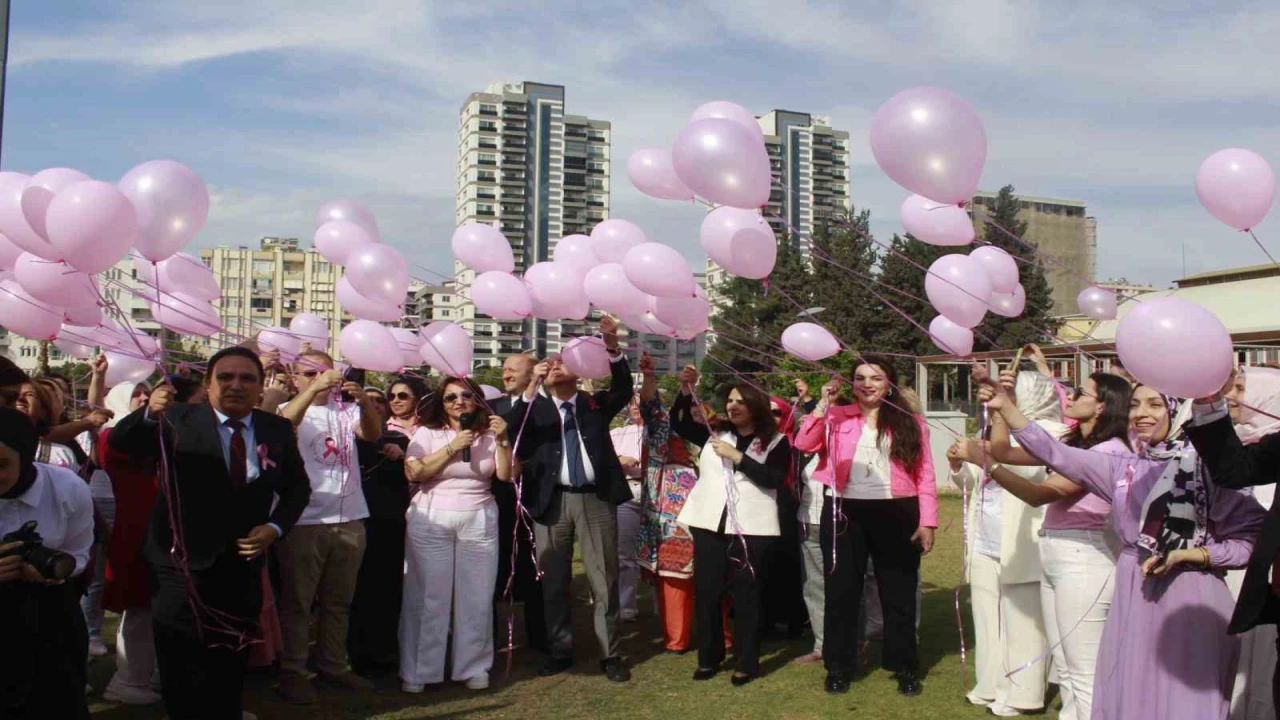 Adana’da meme kanseri farkındalık ayı kapsamında gökyüzüne yüzlerce pembe balon bırakıldı.