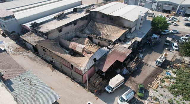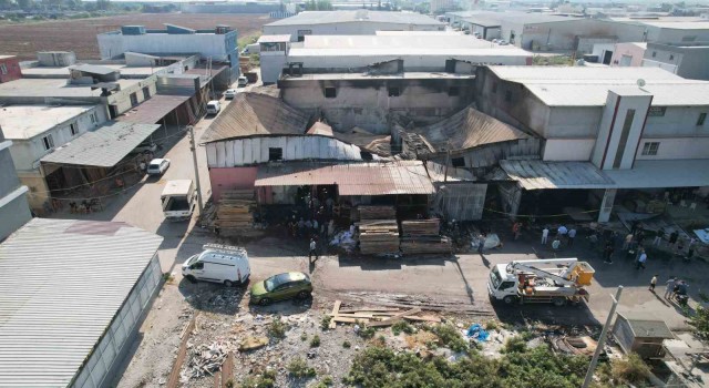 Adana’da Mobilyacılar Sitesi’nde yangında küle dönen 6 iş yerindeki tahribat havadan görüntülendi.