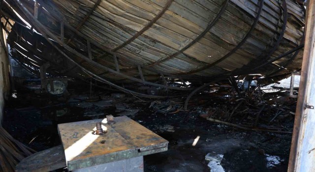 Yanan 6 iş yerindeki tahribat ise havadan görüntülendi.