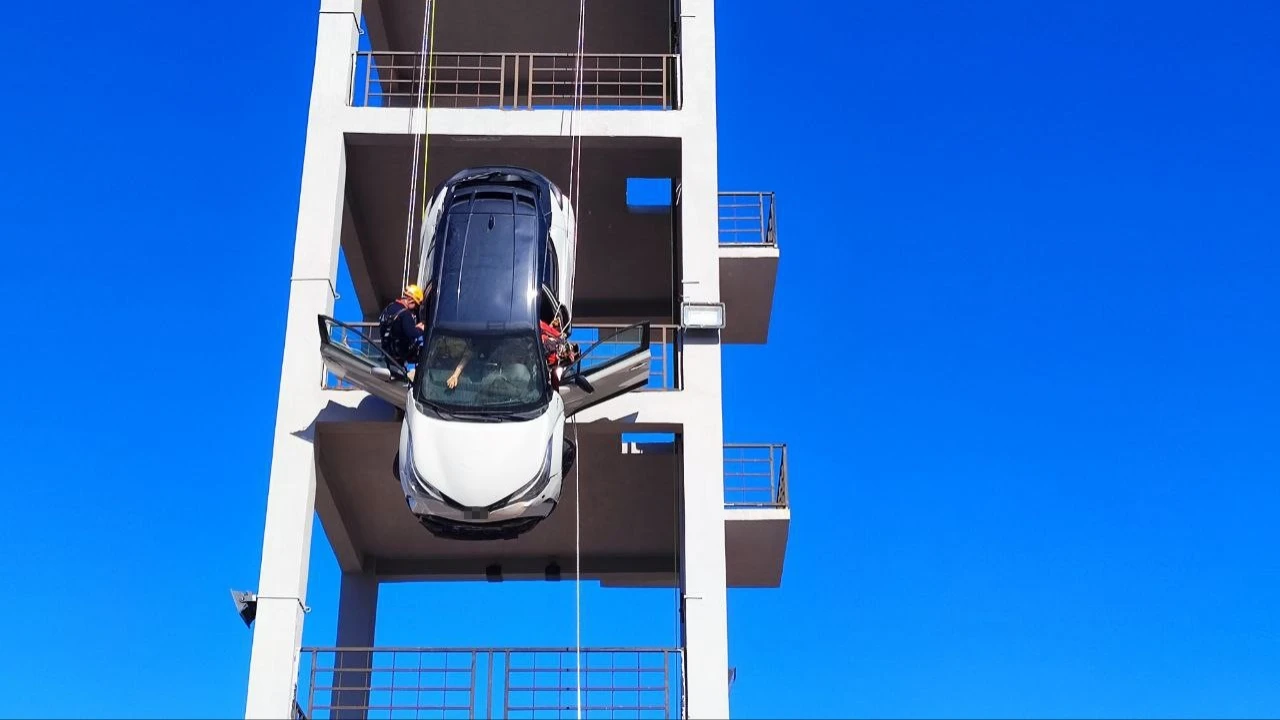 Adana’da AFAD koordinasyonunda 10 kurumdan 175 personelin katılımıyla deprem tatbikatı yapılırken, senaryo gereği uçurumdan sarkmış bir araçta da kurtarma gerçekleştirildi.