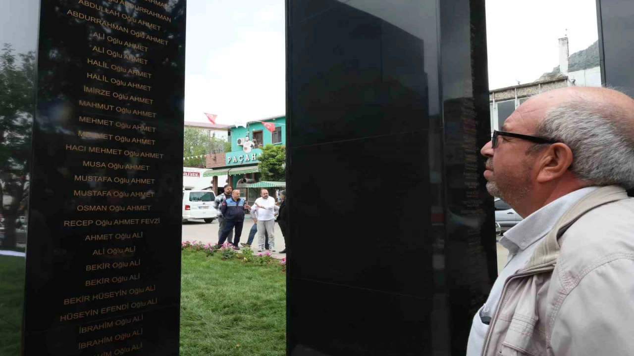 9 sütunlu Şehitlik Anıtı’nda 89 Çanakkale şehidinin isminin yanı sıra ilçede yaşamış terör ve görev şehitlerinin isimleri yer aldı.