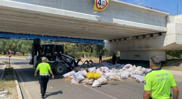 Olayda yaralanan olmazken çuvalların üzerine düştüğü araçta maddi hasar oluştu.