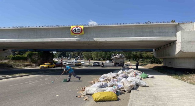 Olay, Seyhan ilçesine bağlı Reşatbey Mahallesi Fuzuli Caddesi’nde meydana geldi. Seyir halindeki kamyon köprü altından geçerken sıkıştı. 4 metre yüksekliğe sahip köprüde sıkışan kamyonda bulunan tahta yüklü onlarca çuval yola saçıldı. Düşen çuvallardan bazıları ise o esnada kamyonun arkasında bulunan aracın üzerine düştü.