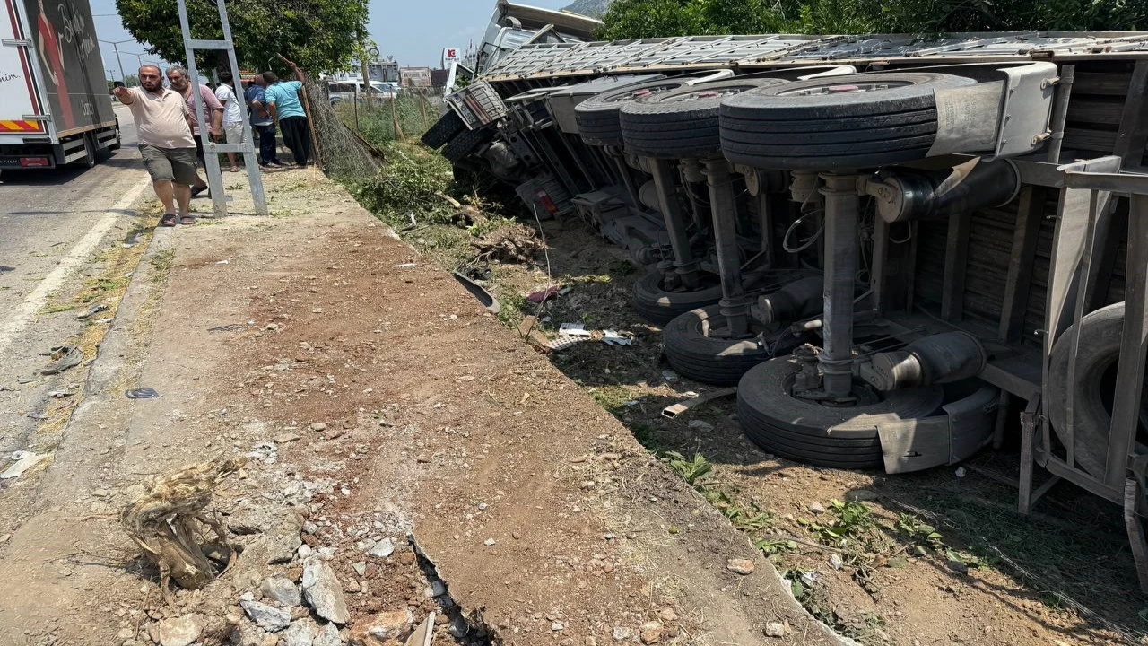 Adana’nın Kozan ilçesinde bir tır, bir kamyon ve 2 otomobilin karıştığı zincirleme trafik kazası meydana geldi. Kazada bahçeye devrilen tırın sürücüsü sıkıştığı yerden güçlükle çıkarıldı.