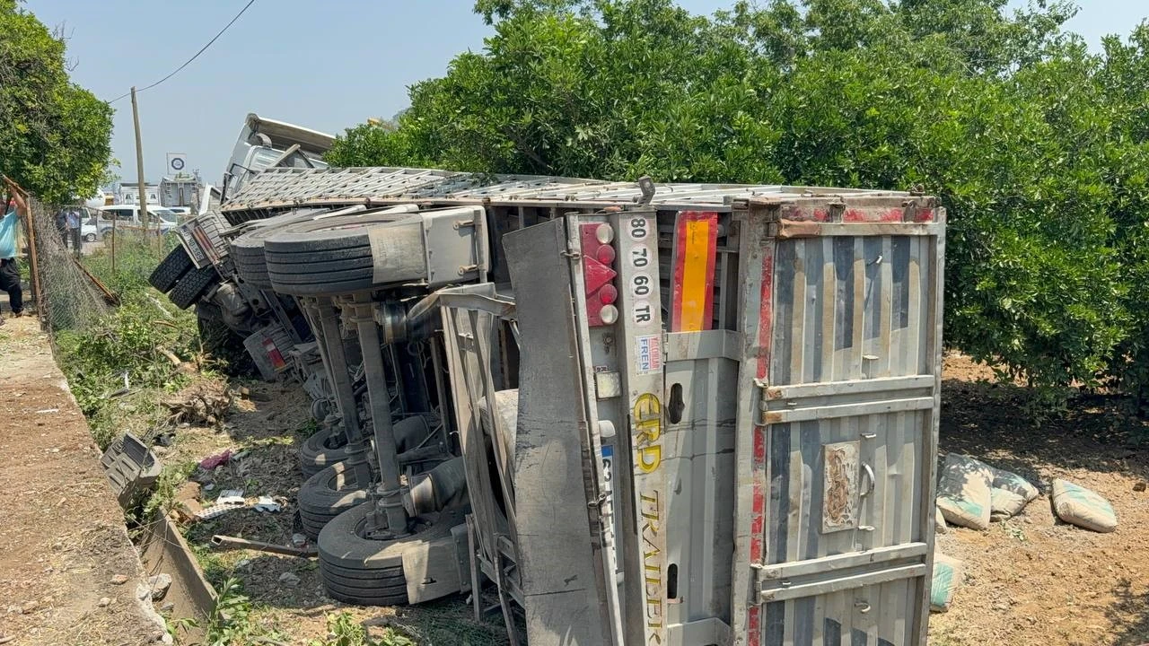 ADANA'DA ZİNCİRLEME KAZADA TIR NARENCİYE BAHÇESİNE DEVRİLDİ