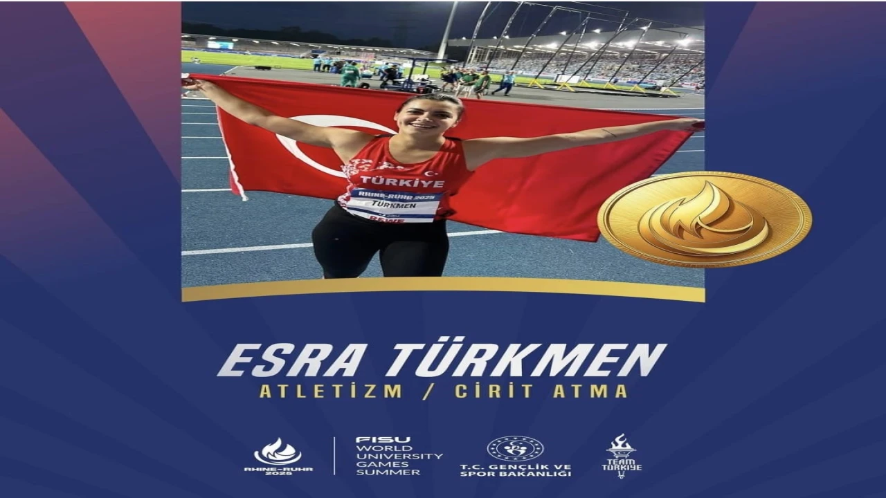 FISU 2025 Dünya Üniversite Yaz Oyunları’nda Türkiye’yi atletizm cirit atma branşında temsil eden Adanalı milli sporcu Esra Türkmen, 59.90 metrelik atışıyla altın madalya kazandı.