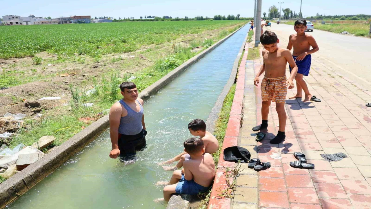 Türkiye’nin en sıcak illerinden Adana’da sulama kanallarında boğulma tehlikesinden korkan bazı çocukların kanaletlerde yüzüp, kaldırımda uzanıp güneşlenmeleri dikkat çekti.
