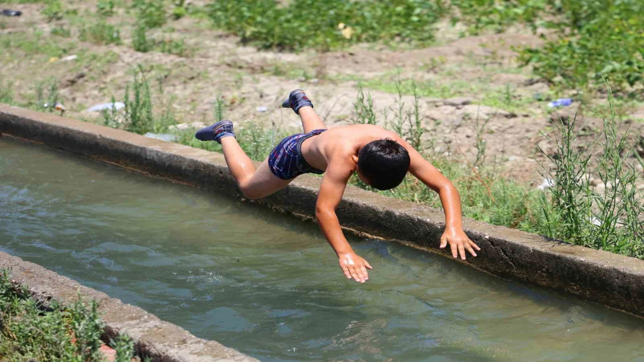 Yaz sıcaklarını ve tatili fırsat bilen çocuklar, sulama amaçlı kullanılan açık kanaletlerin içine girerek vakit geçirdi. Çocuklar, saatlerce güvenlik açısından daha az risk taşıyan bu alanlarda serinlemeye çalışırken, kaldırımlara da uzanıp güneşlenmeleri dikkat çekti.