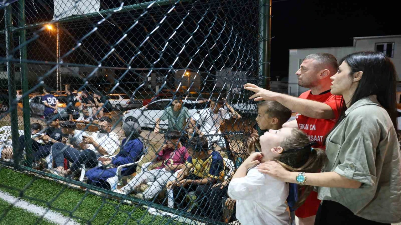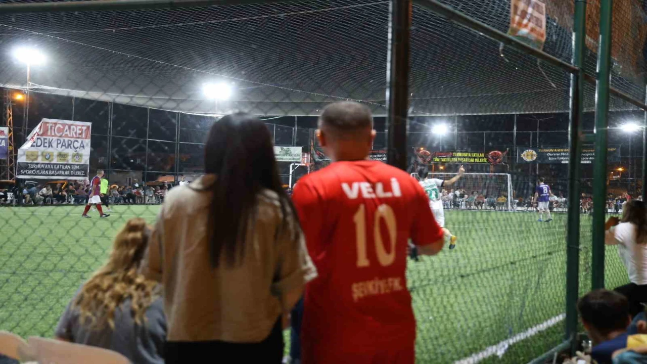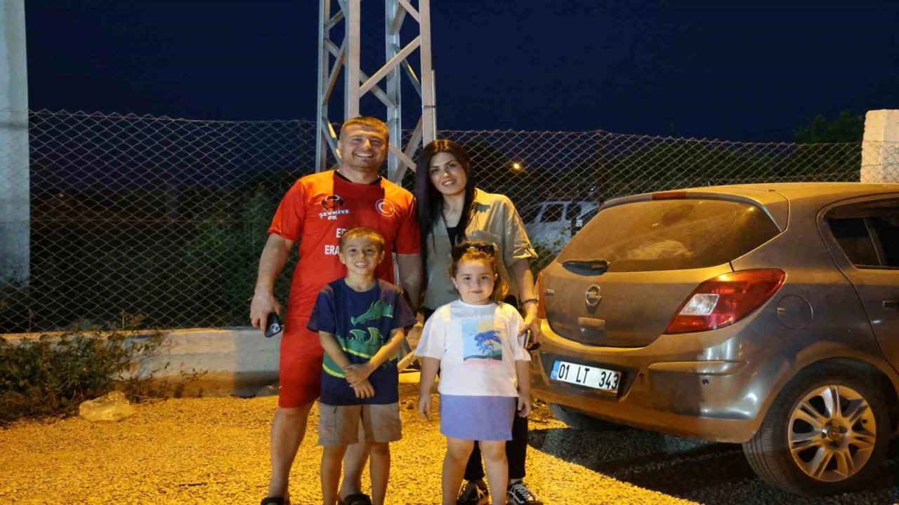 Adana’da Süper Lig heyecanını aratmayan mahalleler arası Kurtuluş Futbol Turnuvası’na katılan öğretmen Veli Karadeniz, 10. evlilik yıldönümünü sahada eşi ile kutladı.